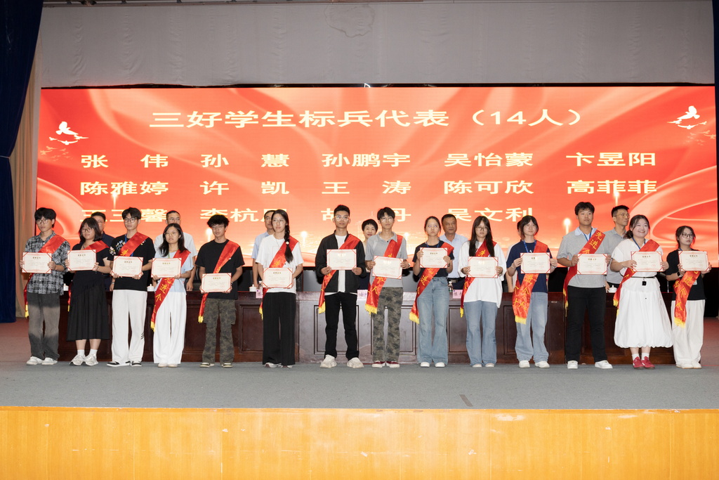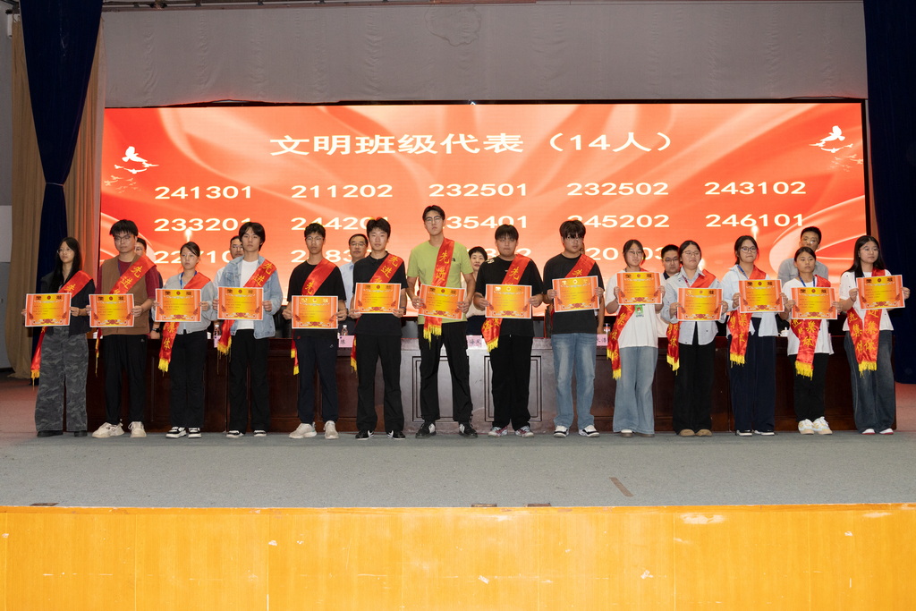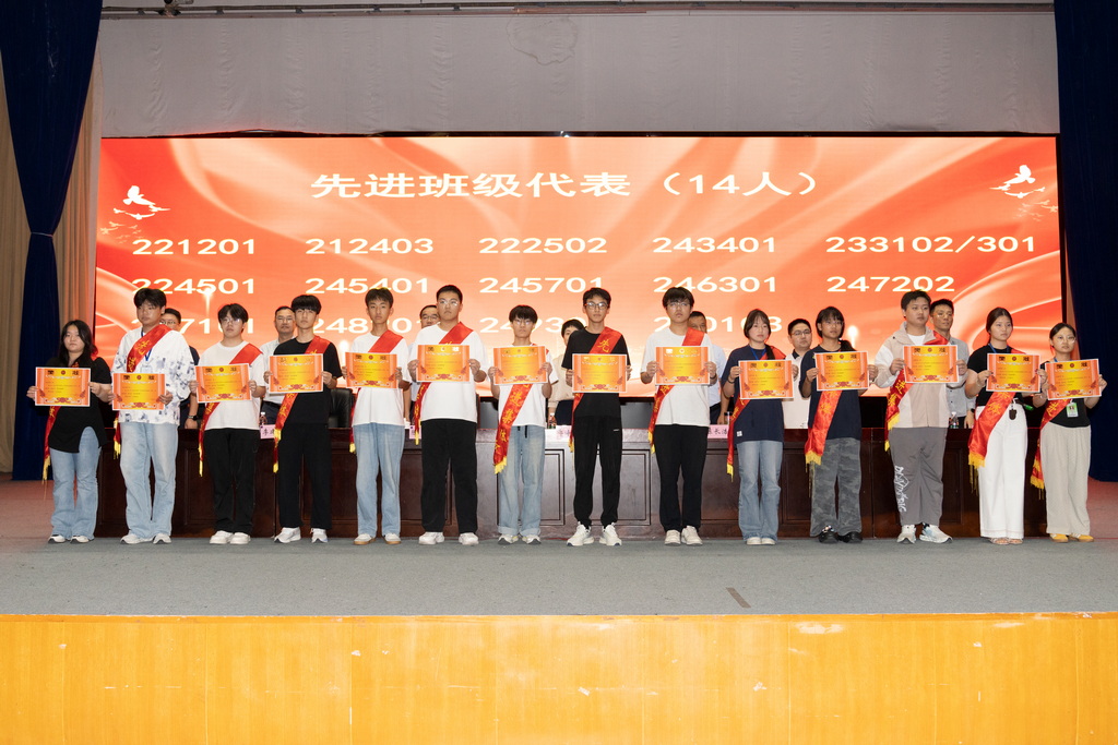 大會共表揚了211202班等28個文明班級,211201班等27個先進班級,徐金燦等38名三好學(xué)生標(biāo)兵,張鍵斐等275名三好學(xué)生,姚煜根等433名優(yōu)秀學(xué)生干部,徐金燦等1041名獎學(xué)金獲得者,封瑋等56名優(yōu)秀班主任。