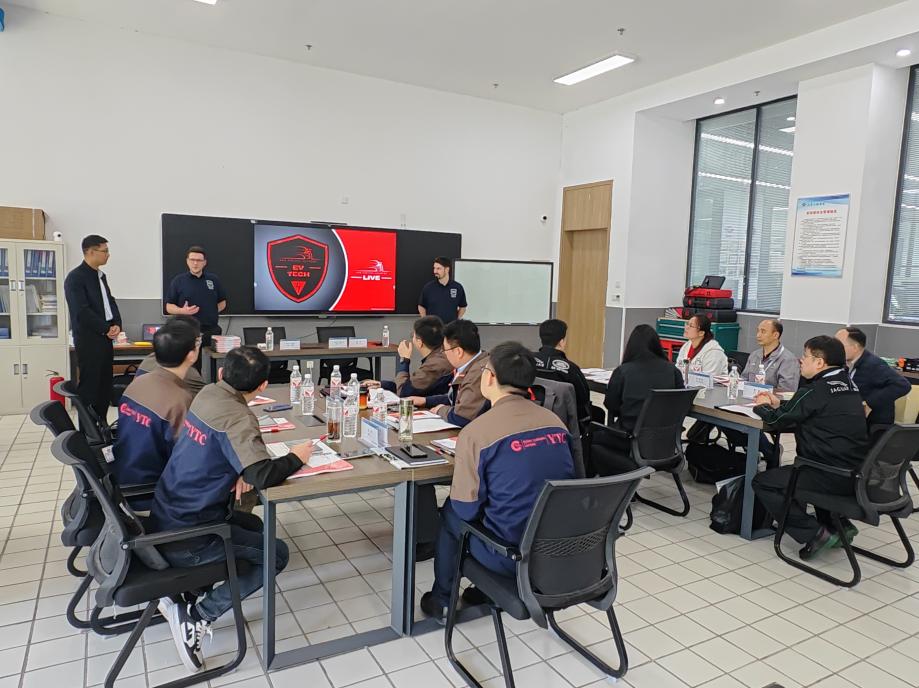 4月11日上午,2024年全國(guó)IMI國(guó)際新能源汽車(chē)維修技術(shù)認(rèn)證師資培訓(xùn)電動(dòng)車(chē)三級(jí)/四級(jí)培訓(xùn)班在我校正式開(kāi)班,來(lái)自于江蘇、廣東、上海、浙江等省份共計(jì)12名專(zhuān)業(yè)教師參加了為期12天的培訓(xùn)。英國(guó)汽車(chē)工業(yè)學(xué)會(huì)(IMI)中國(guó)首席代表張亮、IMI培訓(xùn)師Peter Banks和Nathan Searle、學(xué)校黨委書(shū)記張?bào)w松出席了開(kāi)班儀式,副校長(zhǎng)鄭海風(fēng)主持,教務(wù)處、汽車(chē)工程學(xué)院等相關(guān)人員參加。