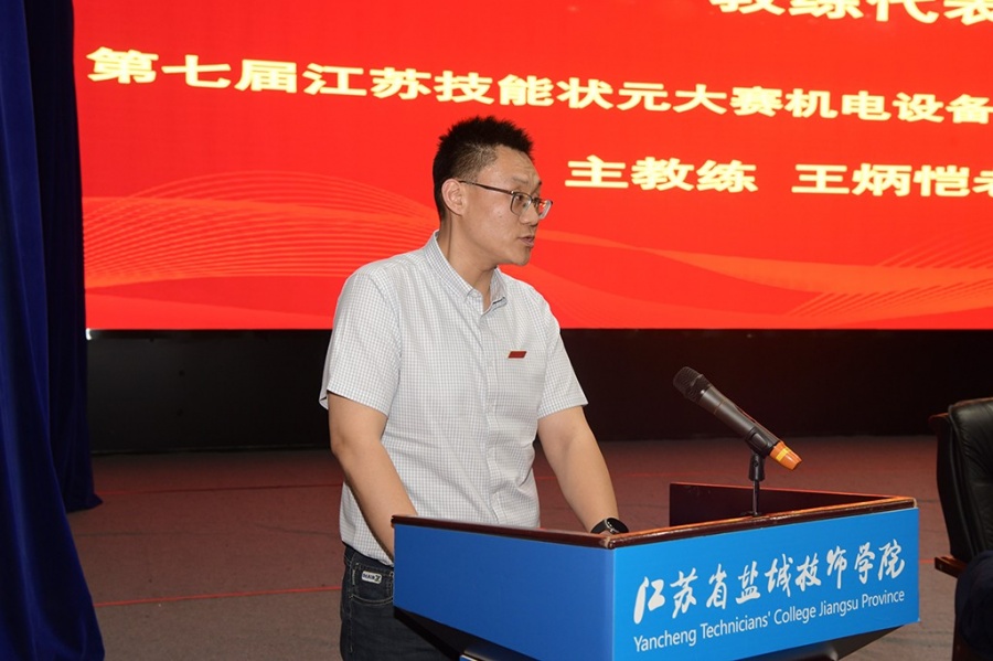 5月14日下午,鹽城技師學(xué)院召開技能大賽總結(jié)表揚(yáng)大會(huì),對(duì)上半年重要賽事中獲獎(jiǎng)選手、教練和保障團(tuán)隊(duì)進(jìn)行表揚(yáng)獎(jiǎng)勵(lì)。其中,4個(gè)職工組別分別獲得獎(jiǎng)金12.5萬元,1個(gè)學(xué)生組別獲得獎(jiǎng)金5萬元。黨委書記張?bào)w松為第47屆世界技能大賽電氣裝置項(xiàng)目集訓(xùn)隊(duì)授旗,校長(zhǎng)張兵講話,副校長(zhǎng)夏建友主持會(huì)議,副校長(zhǎng)唐監(jiān)懷宣讀表揚(yáng)通報(bào)。