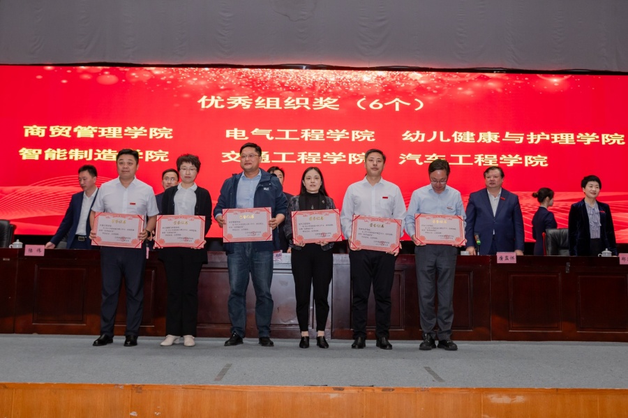 校黨委班子成員、全體干部職工和參賽選手在主會(huì)場(chǎng)文港中路校區(qū)二樓學(xué)術(shù)報(bào)告廳出席會(huì)議,全體學(xué)生分別在各班級(jí)分會(huì)場(chǎng)收聽收看。