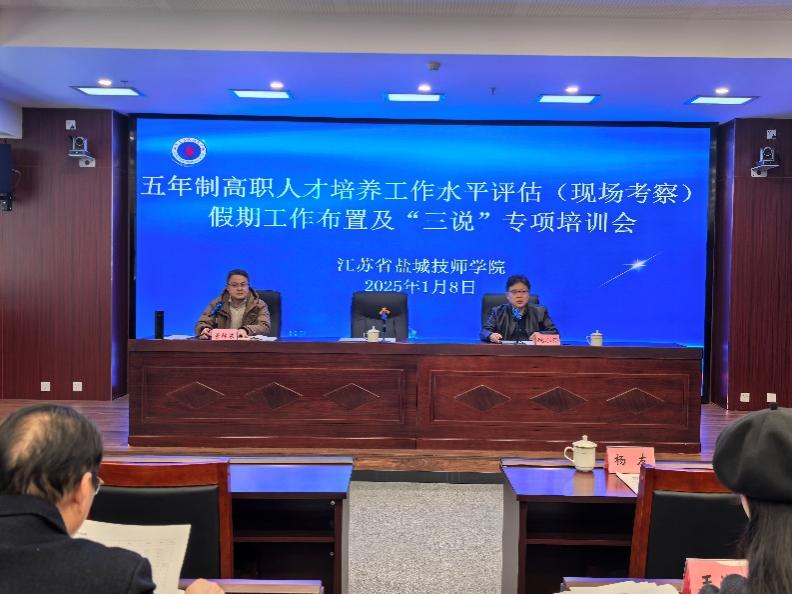 1月8日下午,評估處、教務處聯(lián)合在匠心樓17樓北會議室,組織召開五年制高職人才培養(yǎng)工作水平評估(現(xiàn)場考察)假期工作布置暨“三說”專項培訓會。黨委委員姚小強出席并講話,相關處室負責人、材料員及設有五年制高職專業(yè)的二級學院院長、教學副院長、“三說”人員參加會議。