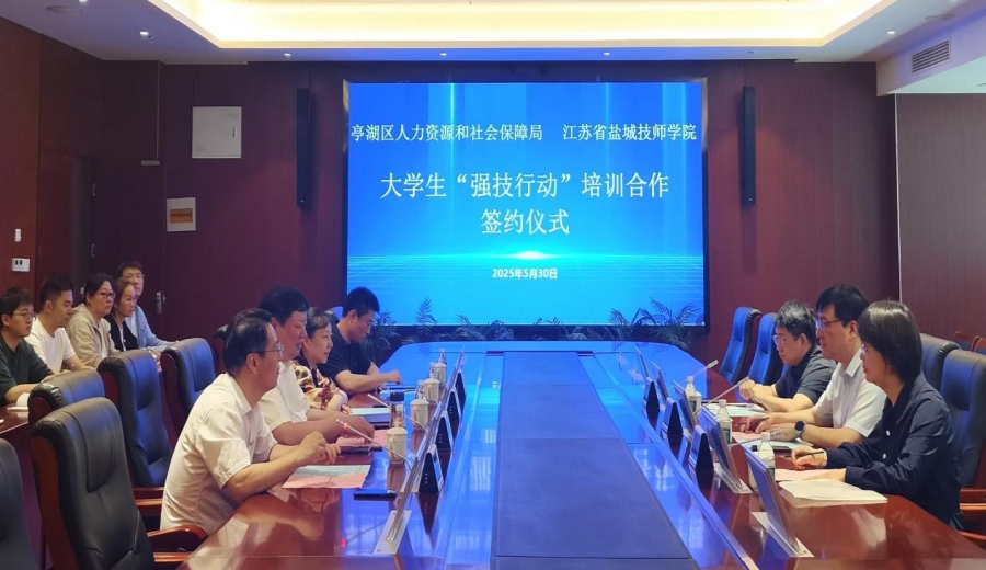 5月30日上午,鹽城技師學院與亭湖區(qū)人力資源和社會保障局在海洋路校區(qū)16樓會議室舉行大學生“強技行動”培訓合作簽約儀式。亭湖區(qū)人力資源和社會保障局局長、黨委書記朱東升,副局長邱靜,鹽城技師學院副校長唐監(jiān)懷出席,亭湖區(qū)人力資源和社會保障局以及學校培訓處、信息工程學院相關負責人參加。簽約儀式由信息工程學院院長陳月東主持。