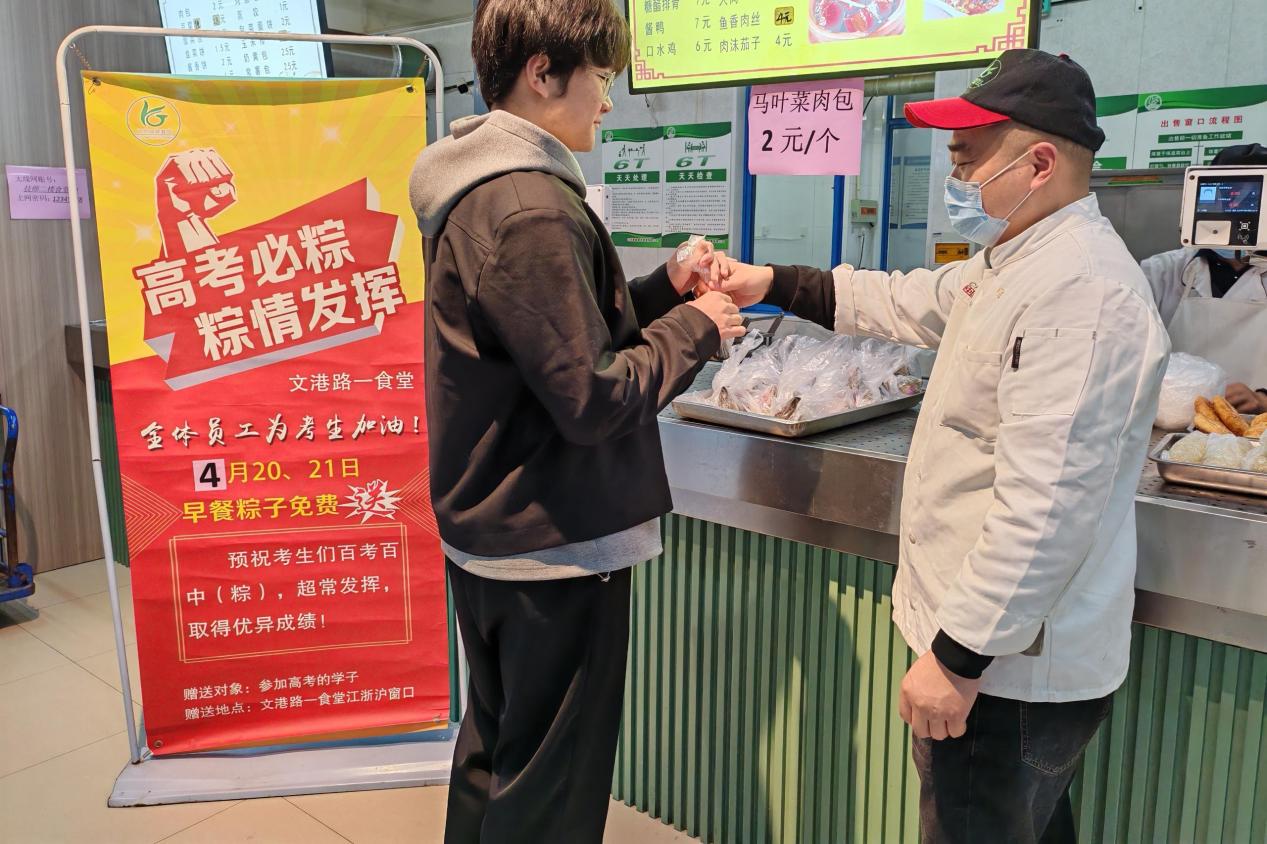 為了讓學(xué)生吃上安全衛(wèi)生、稱心如意的粽子,文港路一食堂高度重視,從粽子的采購(gòu)到發(fā)放,實(shí)行全程跟蹤監(jiān)督,確保每個(gè)環(huán)節(jié)的規(guī)范、衛(wèi)生。食堂工作人員將準(zhǔn)備好的粽子免費(fèi)分發(fā)給每位考生,讓同學(xué)們?cè)诰o張的備考過程中體會(huì)到了“家”的溫暖,“家”的味道,他們表示,高考雖然迫在眉睫,但是學(xué)校的暖心關(guān)愛和食堂的傾情奉獻(xiàn),讓自己增添了很多的勇氣和信心,禮物雖小,但祝福綿長(zhǎng)。
