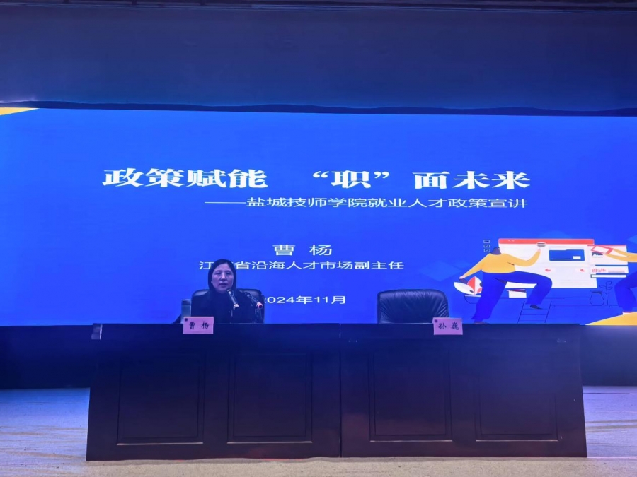 曹楊向大家介紹了鹽城市情,并逐項(xiàng)解讀了“黃海明珠”政策,針對(duì)職業(yè)教育人才的免費(fèi)職業(yè)培訓(xùn)、社會(huì)保險(xiǎn)補(bǔ)貼、一次性創(chuàng)業(yè)補(bǔ)貼、就業(yè)見(jiàn)習(xí)補(bǔ)貼等就業(yè)創(chuàng)業(yè)政策。曹楊還結(jié)合國(guó)內(nèi)外職業(yè)教育就業(yè)的需求等方面分析了技工院校畢業(yè)生就業(yè)形勢(shì),從技能評(píng)估、興趣愛(ài)好與職業(yè)選擇、職業(yè)定位等方面對(duì)同學(xué)們的擇業(yè)觀做了精準(zhǔn)指導(dǎo);建議同學(xué)們要修煉內(nèi)功,不斷提升五種就業(yè)能力:良好的心態(tài)、吃苦耐勞的精神、持續(xù)學(xué)習(xí)的能力、團(tuán)隊(duì)協(xié)作能力和溝通交流能力、維護(hù)好合法權(quán)益。
